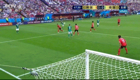 德国队和韩国队的上半场,双方互有攻势,两支球队却始终无法将攻势转化为得分。