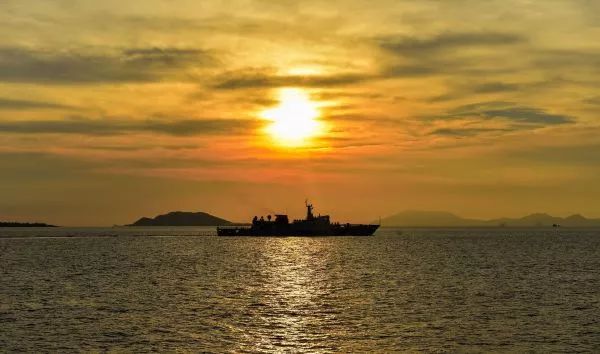 ▲资料图片:驶离码头的海警3304舰航行在夕阳中。新华社记者毛思倩摄