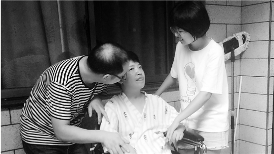一楼的客厅里摆了一张病床和轮椅,佳颖妈妈还在午睡。看上去气色不错。听到有人进屋,她立即睁开眼睛,看到女儿和丈夫,马上就露出了笑容。