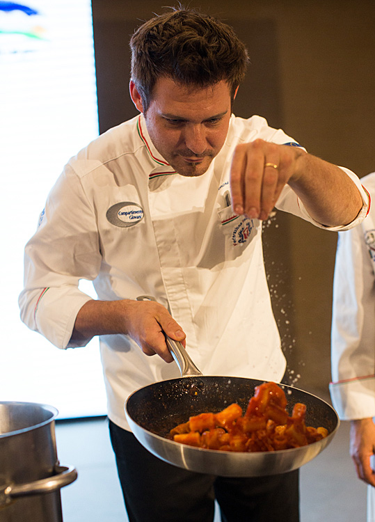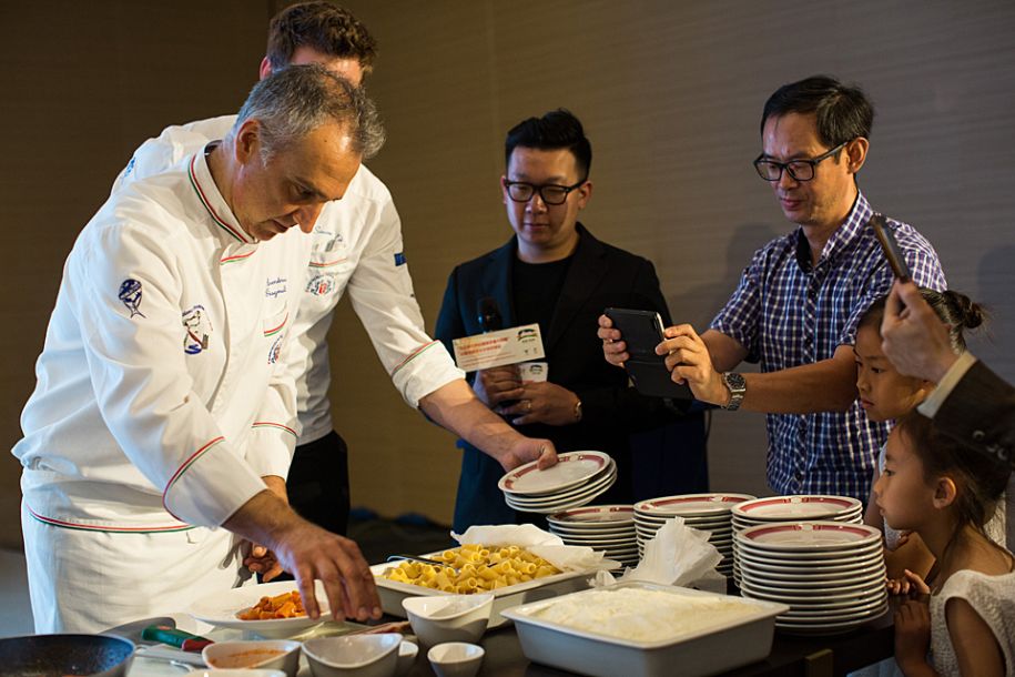 6月25日,意大利厨师在罗马举行的“兰州牛肉拉面牵手意大利面”活动上制作意大利面。当日,“兰州牛肉拉面牵手意大利面”暨兰州市文化旅游推介活动在意大利罗马拉开帷幕,来自中意两国的厨师在活动现场“同台竞技”。此外,兰州市还带来了特色演出和民间手工技艺展示。新华社记者金宇摄