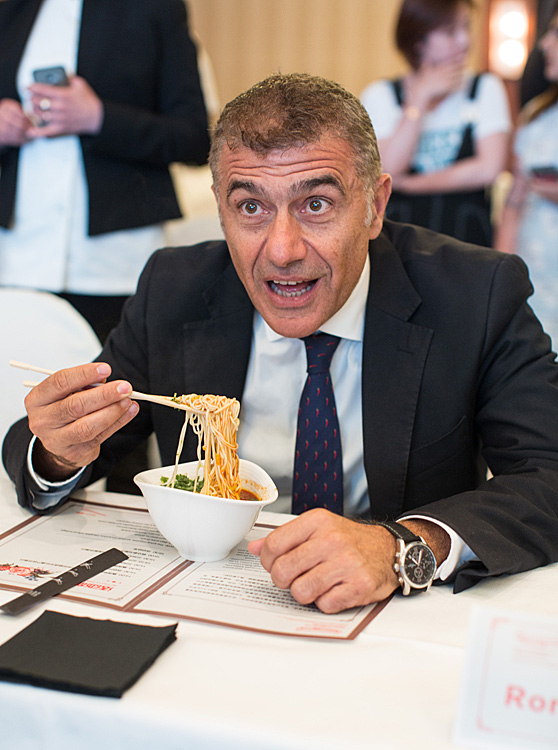6月25日,嘉宾在意大利罗马举行的“兰州牛肉拉面牵手意大利面”活动上品尝兰州拉面。当日,“兰州牛肉拉面牵手意大利面”暨兰州市文化旅游推介活动在意大利罗马拉开帷幕,来自中意两国的厨师在活动现场“同台竞技”。此外,兰州市还带来了特色演出和民间手工技艺展示。新华社记者金宇摄