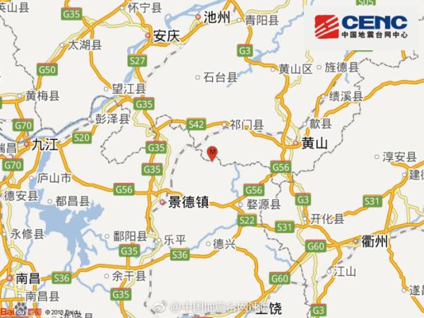 江西景德镇浮梁县发生3.6级地震,震源深度5千米