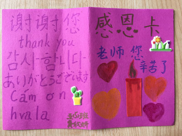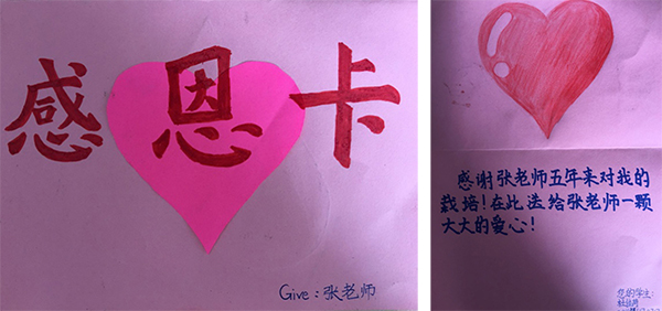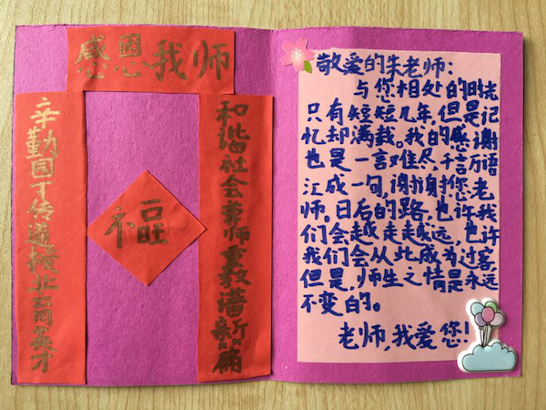 让我们来看看上海市浦东新区教育学院附属小学毕业班的学生们,在结业典礼上送给自己的班主任和授课老师的感恩卡。