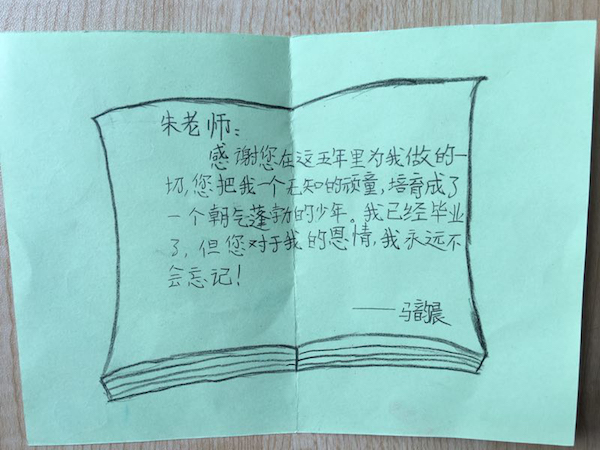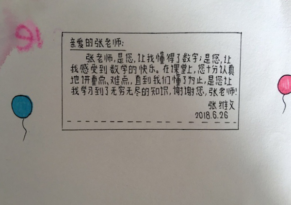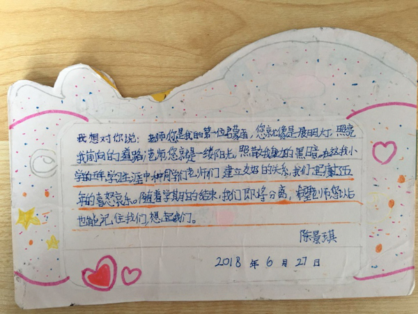 原标题:毕业季| 小学毕业生手写感恩卡感谢老师