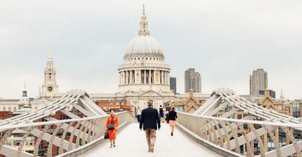 伦敦的千禧桥连接着两个主要的城市景点:圣保罗大教堂和泰特现代艺术馆。