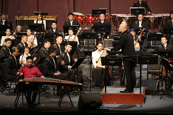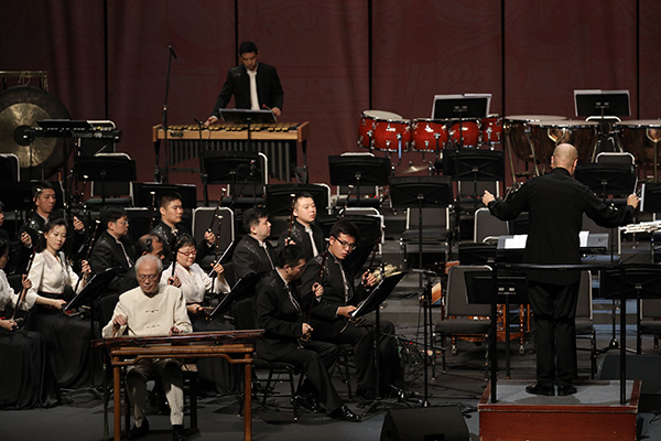 音乐会上,琵琶演奏家刘德海、古琴演奏家龚一、古筝演奏家王中山相继登台,以琵琶齐奏《飞花点翠》、古琴与乐队《平沙落雁》、古筝与乐队《满江红》等,为六十周年庆典添彩。