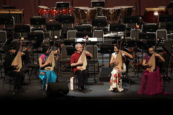 上海民族乐器一厂成立六十周年音乐会现场。民族器乐重奏《敦煌》