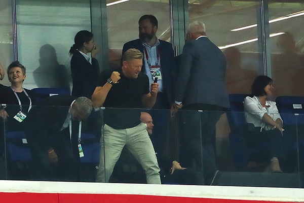 看到儿子扑出点球,老舒梅切尔十分兴奋。