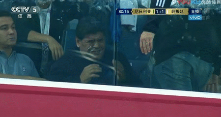 阿根廷队的这场比赛,看台上的马拉多纳也成了关注的焦点。