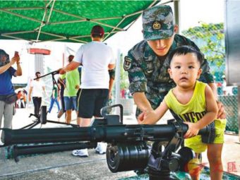 驻港部队开放日掀高潮:香港市民争睹严整军容