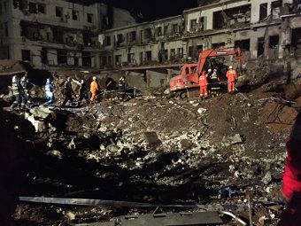 爆炸发生后,救援人员开展救援工作。 澎湃新闻记者王健图 原标题:陕西府谷致15死爆炸案公审:11被告人被控非法制造爆炸物 15人死亡、103人受伤的榆林市府谷县“10.24”爆炸..