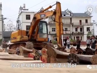 江西殡改强行夺棺:挖掘机现场捣毁上千副棺木