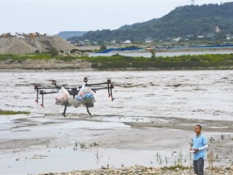 涪江涨水143名工人被困美丽岛,无人机运送物资紧急救援